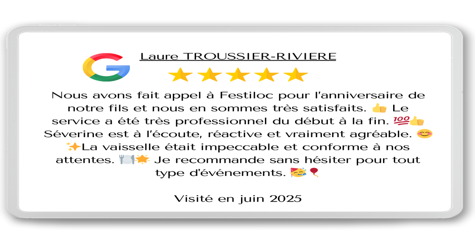 En cas d'indisponibilité d'un article, FESTILOC se réserve le droit de vous proposer un article similaire de remplacement, si cet article ne vous convient pas, l'article ne vous sera pas facturé. Aucun préjudice quelqu'il soit ne peut être demandé par le client.