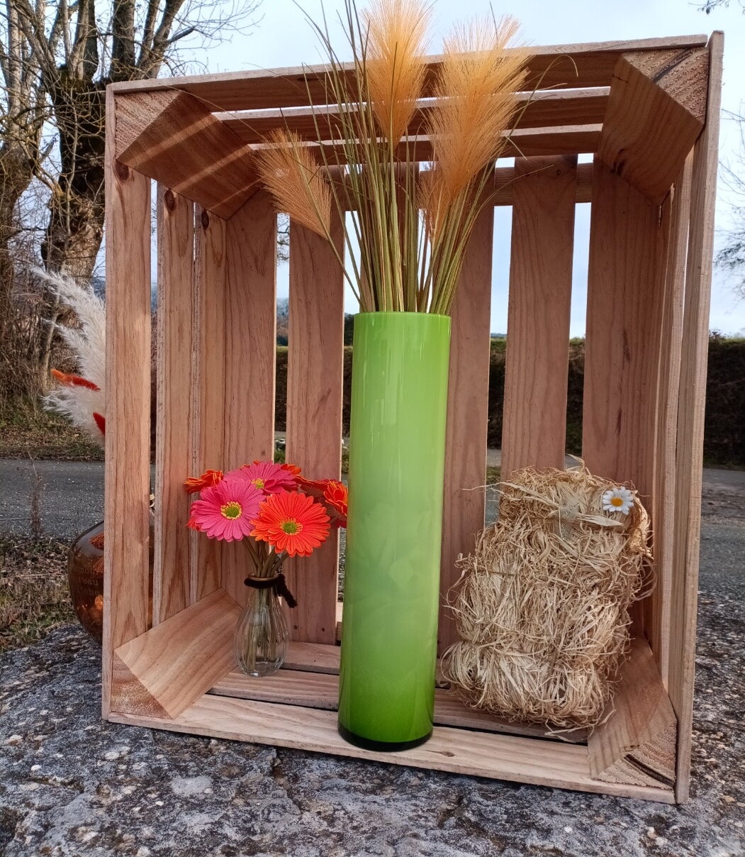 Vase strié conique en verre (bleu, orange, vert ou violet) 21,5 cm