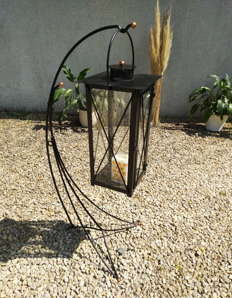 Chandelier sur pied de 1 mètre, en fer forgé avec support pour composition florale