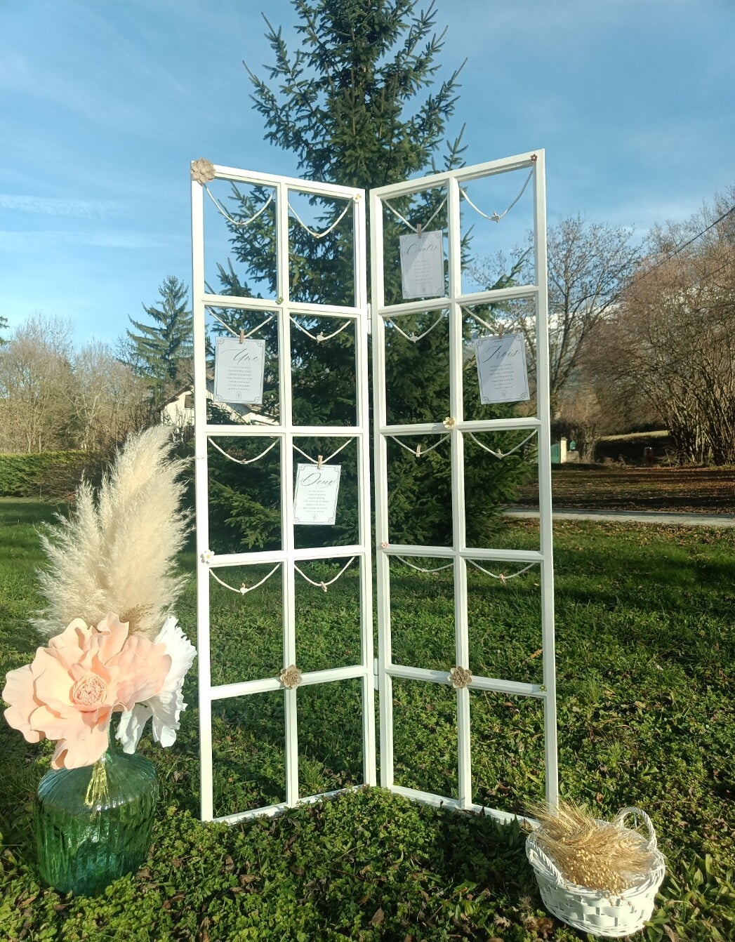Cadre en métal blanc sur pied 100 cm x 153 cm (hauteur) avec toile tendue mariage